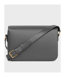 CELINE赛琳 Triomphe 金色饰面可调节肩带 亮面小牛皮 单肩斜挎包 女款 烟黑色