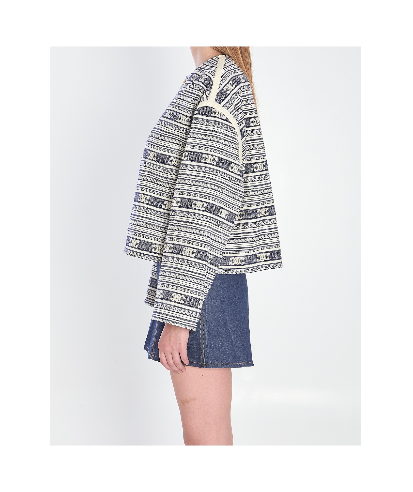 CELINE赛琳 拼色圆领单排扣贴袋长袖夹克外套 女款 蓝色
