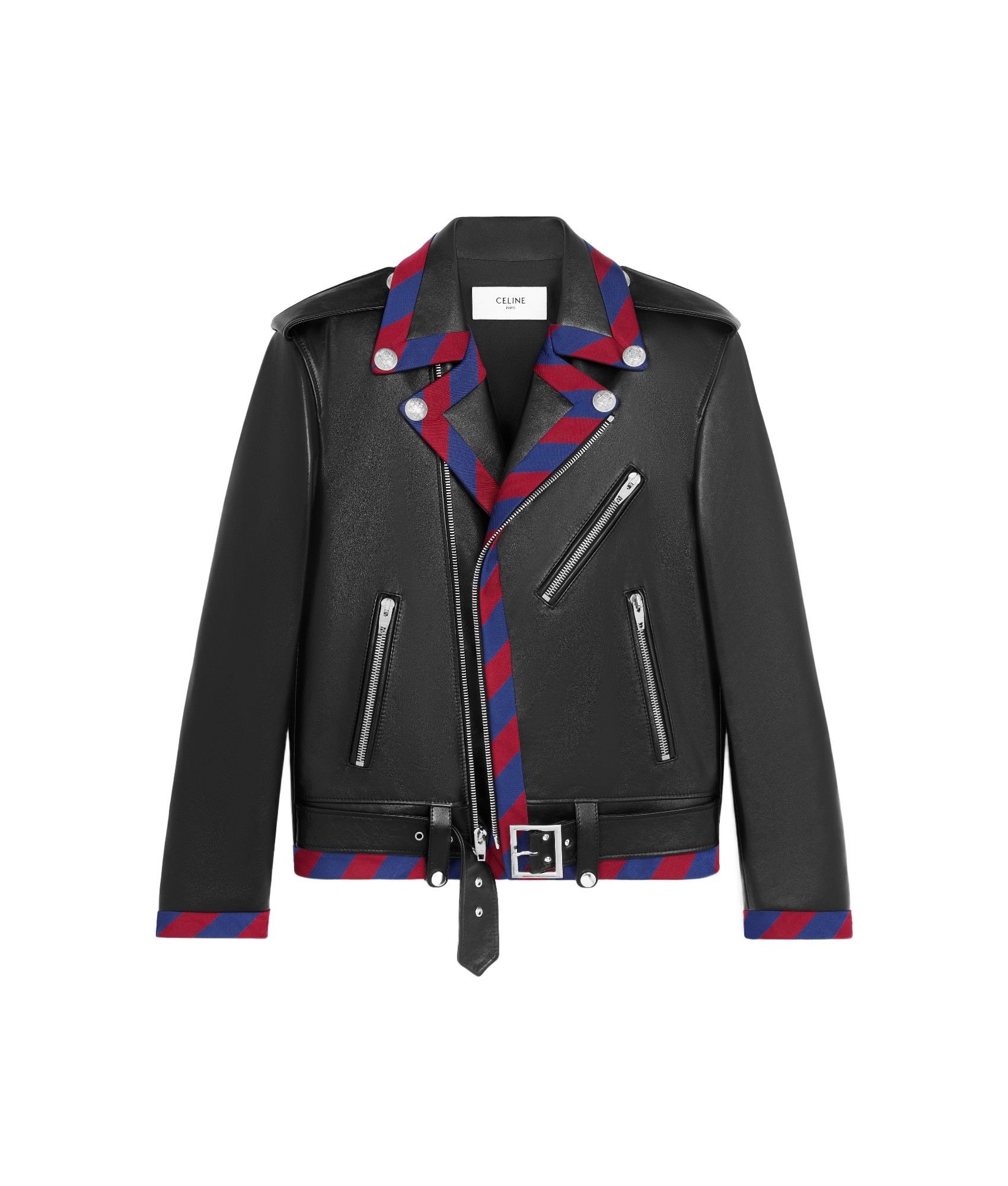 CELINE赛琳 SS25 拼接条纹拉链皮衣 男款 黑色