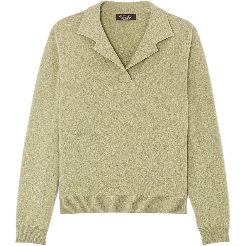 Loro Piana SS25 Arona 纯色翻领套头短袖羊绒衫 女款 青绿色