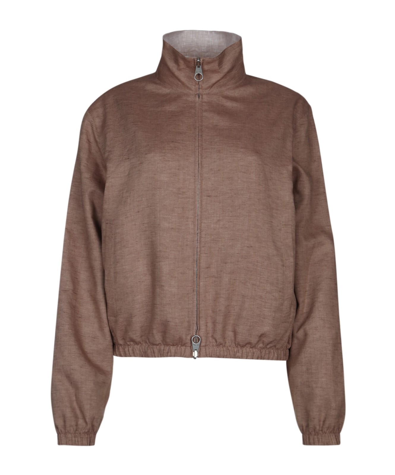 Loro Piana Traveller Mini 立领亚麻迷你野战夹克外套 女款 绿棕色