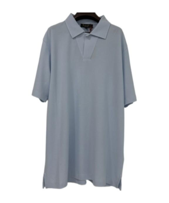Loro Piana SS25 纯色小圆领侧开叉Polo衫 男款 蓝色