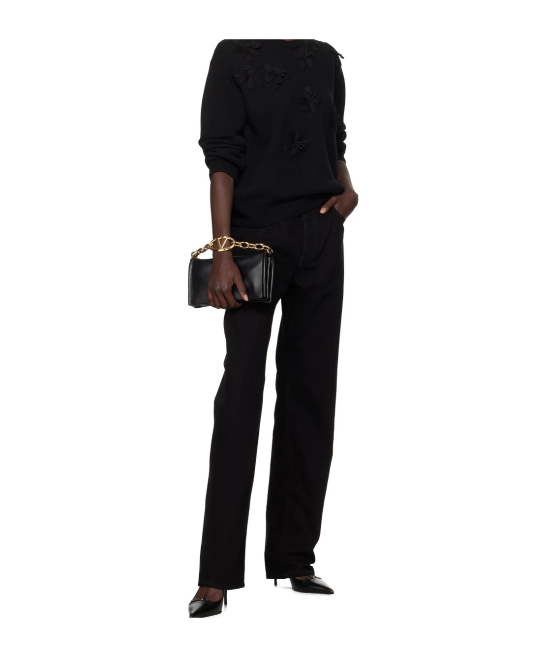 Valentino华伦天奴 纯色徽标中腰拉链直筒牛仔裤 女款 黑色