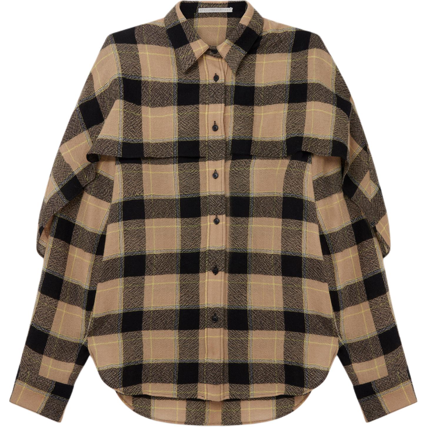 Stella McCartney FW24 格纹斗篷式层叠单排扣休闲长袖衬衫 女款 米色