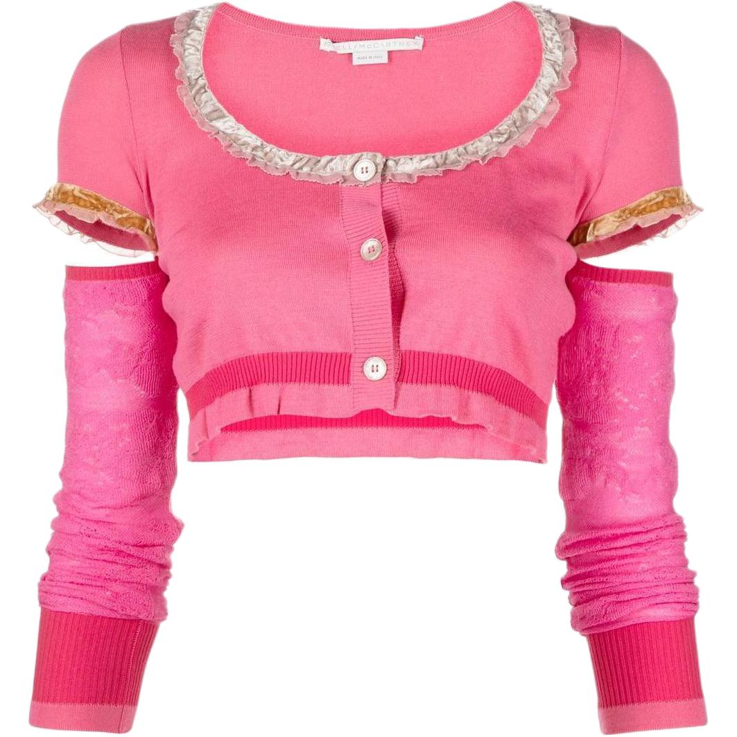 Stella McCartney FW22 挖剪细节荷叶边饰短款截短上衣 女款 粉色