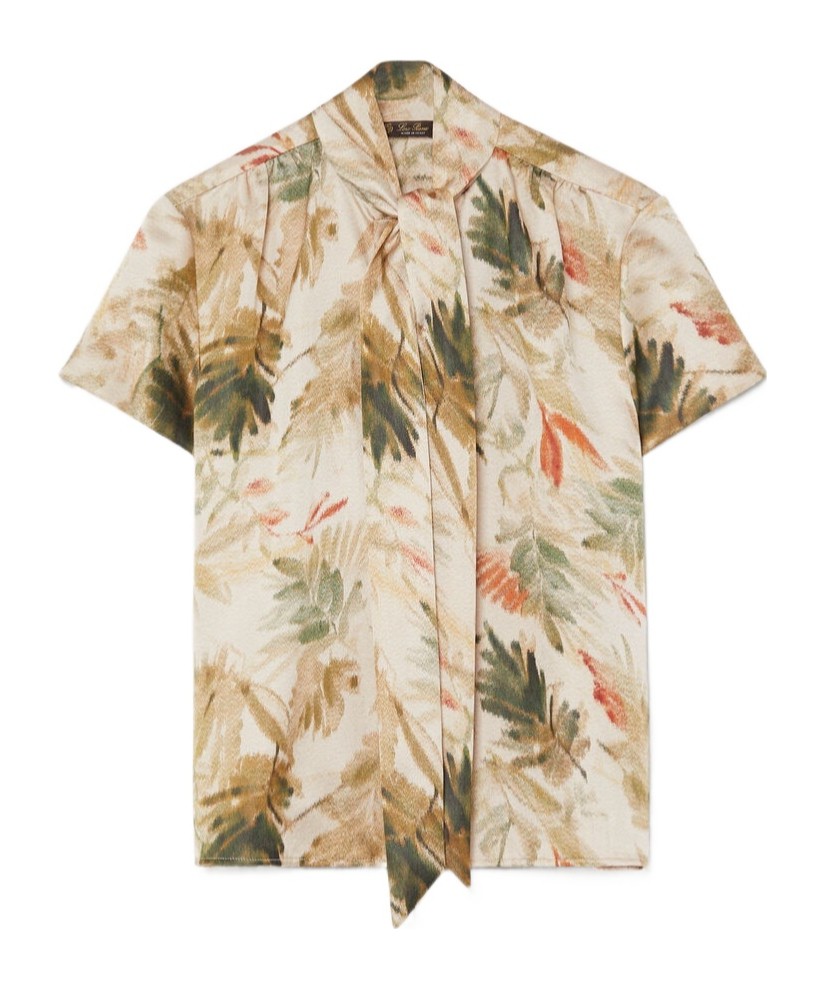 Loro Piana SS25 Febe 植物花卉印花短袖衬衫 女款 绿色