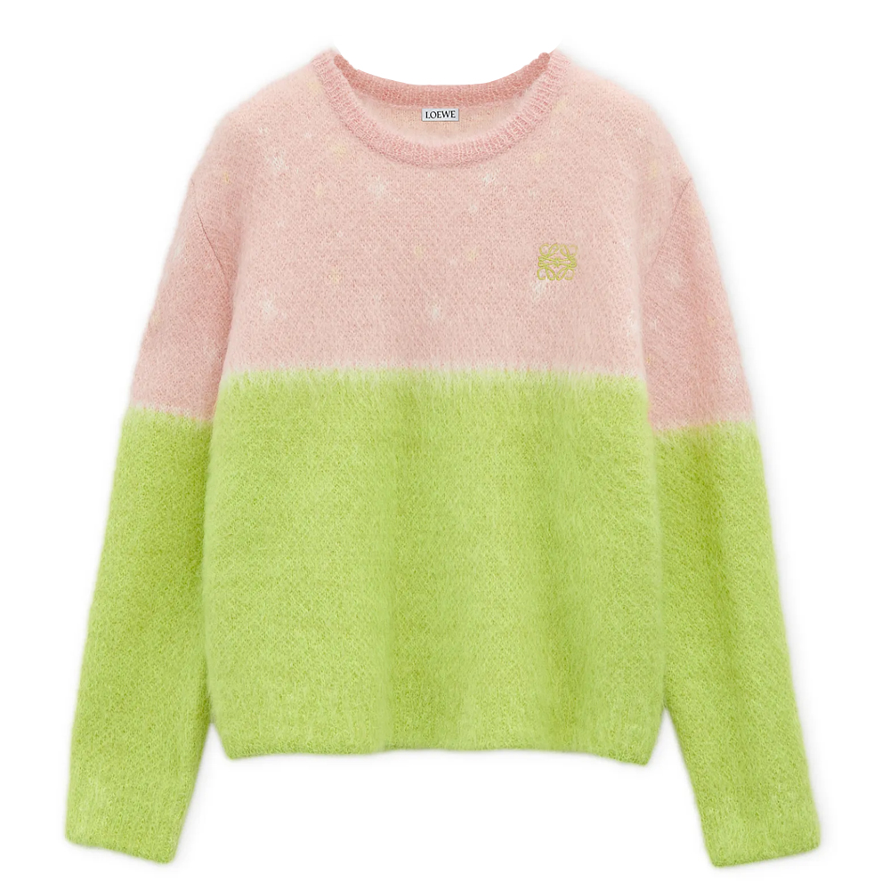 LOEWE罗意威 x Suna Fujita SS25 女士预选系列 拼色圆领长袖针织衫 女款 粉黄色