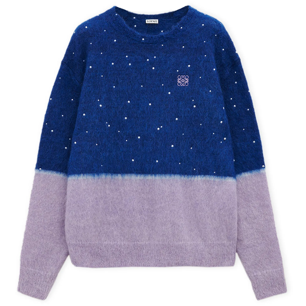 LOEWE罗意威 x Suna Fujita SS25 女士预选系列 马海毛混纺圆领宽松针织衫 女款 海军蓝