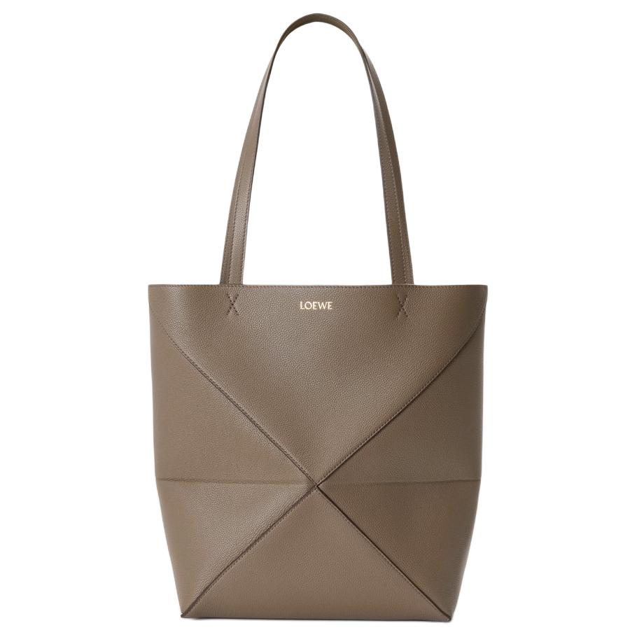 LOEWE罗意威 Puzzle Fold 几何结构柔软粒面 牛皮 托特包Tote包购物袋手提包 中号 女款 灰褐色