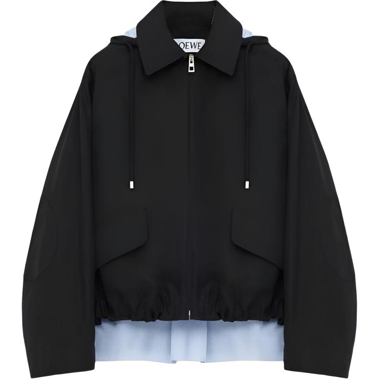 LOEWE罗意威 FW25 棉质华达呢连帽拉链宽松长袖派克大衣 女款