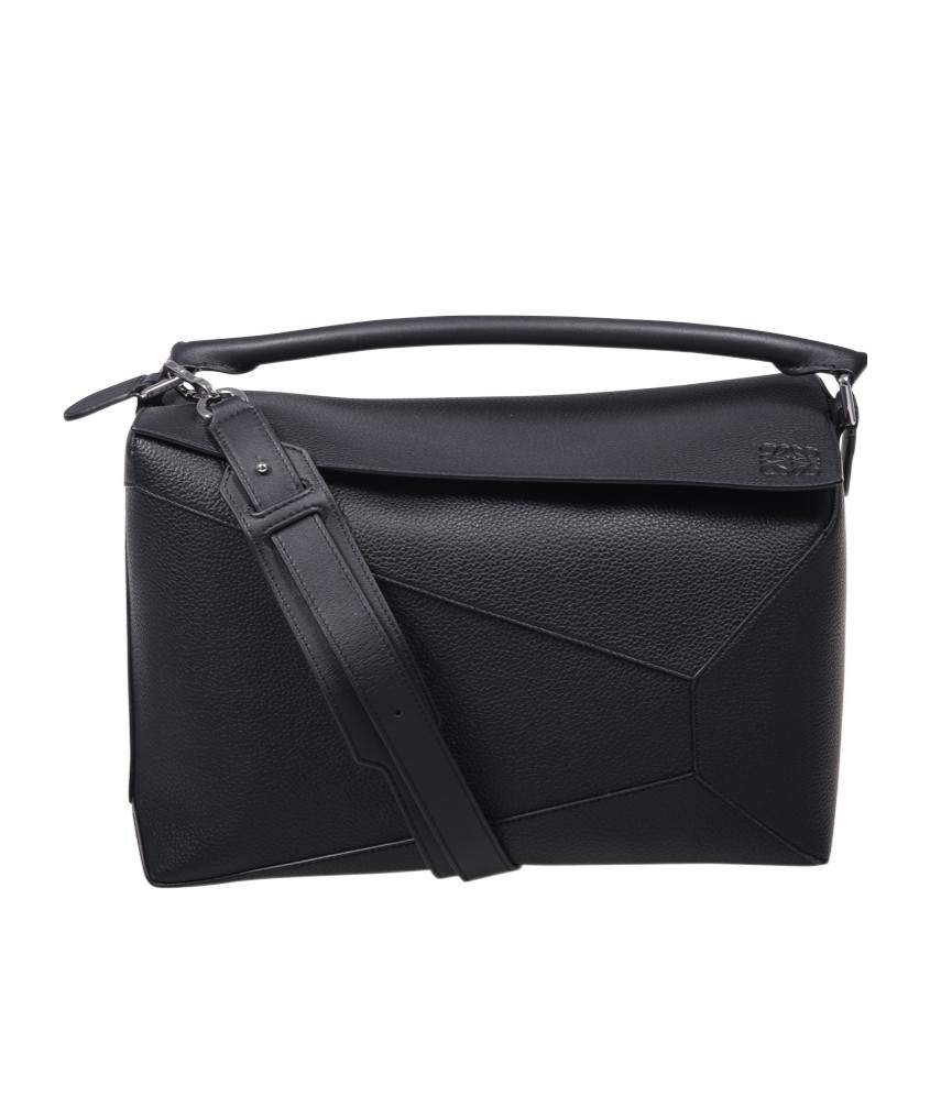 LOEWE罗意威 Puzzle 可拆卸可调节肩带 粒面小牛皮 单肩斜挎手提包 大号 女款 黑色