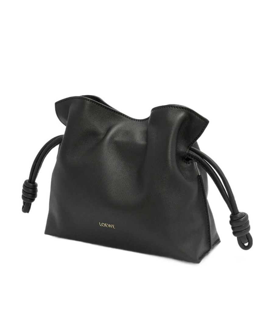 LOEWE罗意威 Flamenco 可拆卸可调整肩带磁扣开合 纳帕牛皮革 手拿包 迷你 女款 黑色