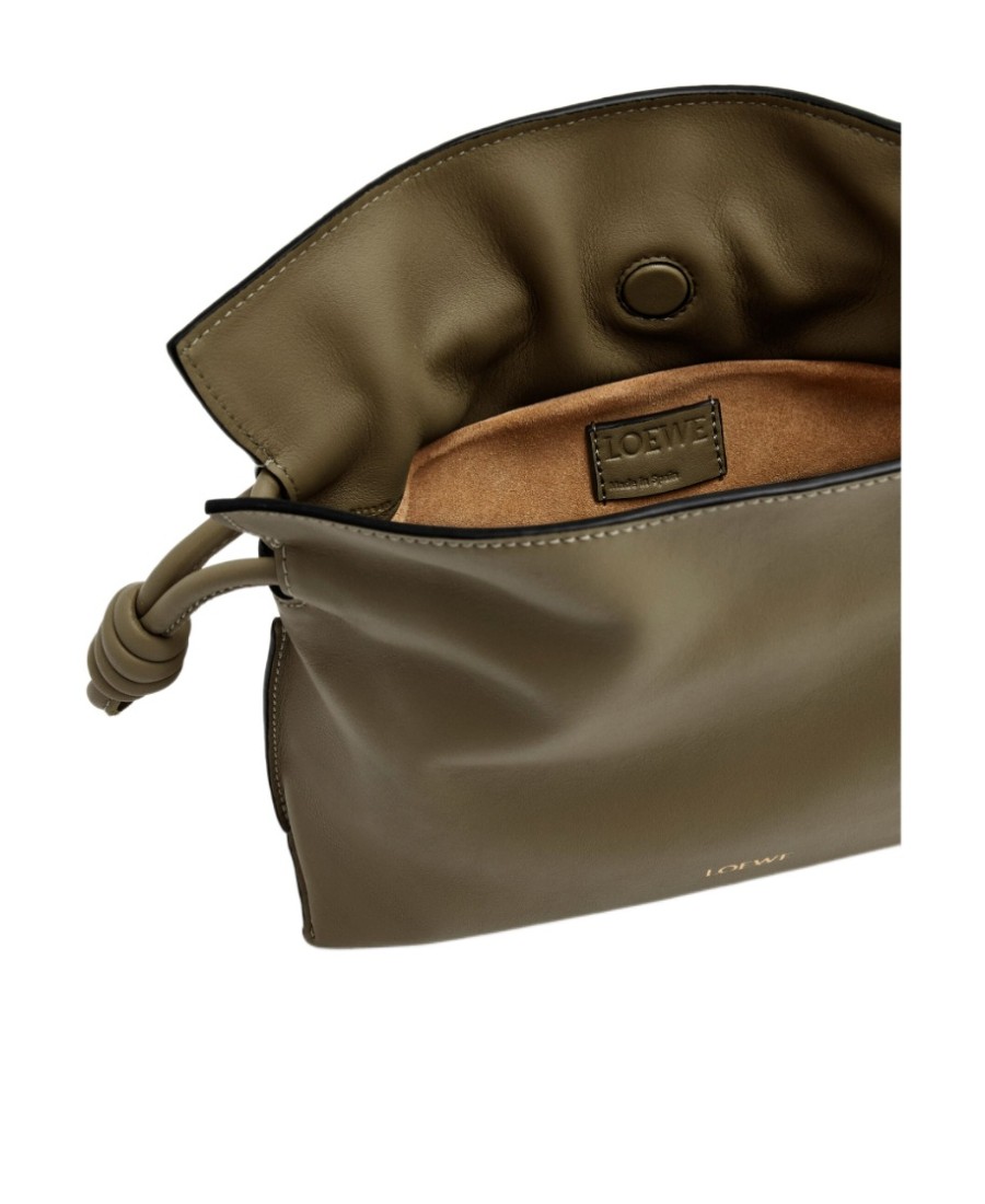 LOEWE罗意威 Flamenco 可拆卸可调整肩带磁扣开合 纳帕牛皮 单肩斜挎手提包 迷你 女款 深卡其绿
