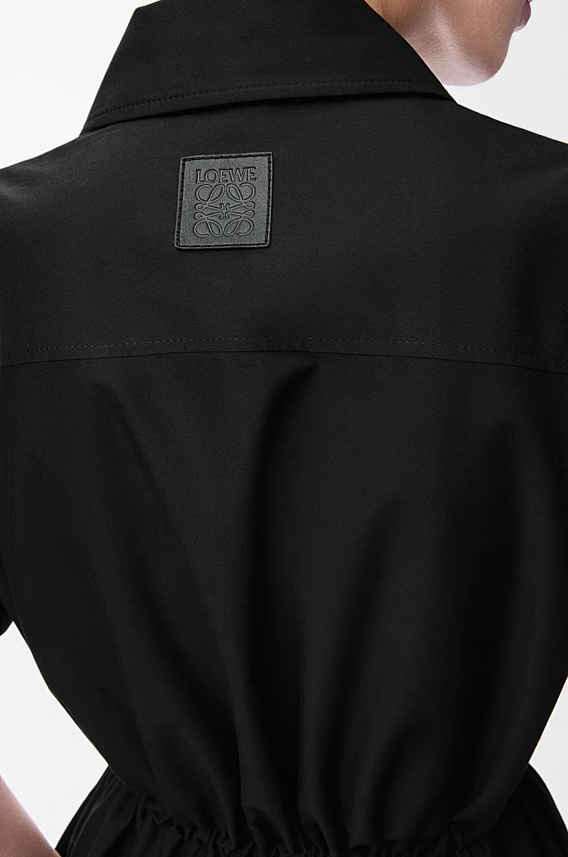 LOEWE罗意威 FW25 女装预选系列棉质和丝绸华达呢松紧腰短袖连衣裙 女款
