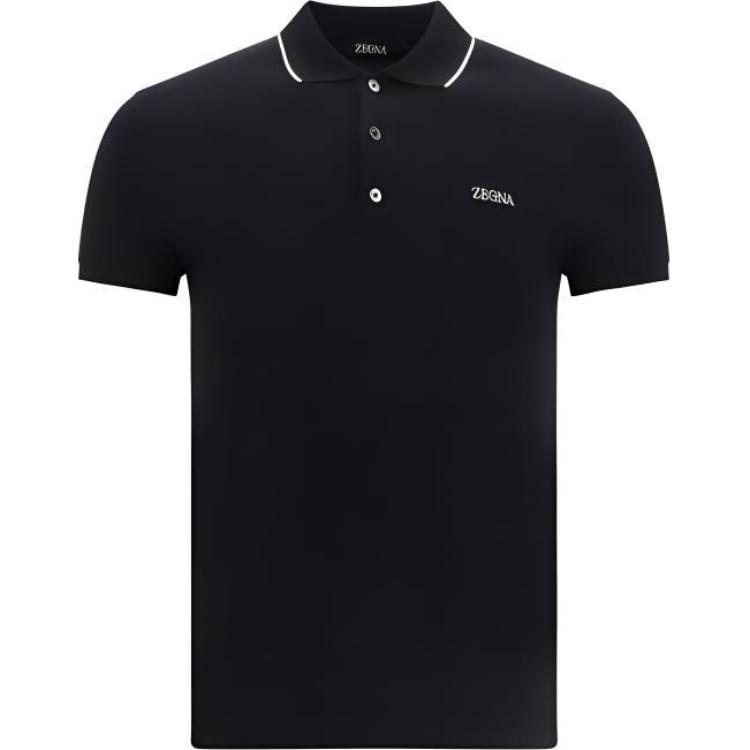 Zegna Logo刺绣条纹边饰短袖Polo衫 男款 黑色