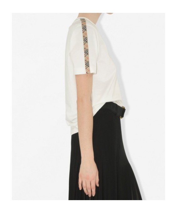 格纹饰边短袖T恤