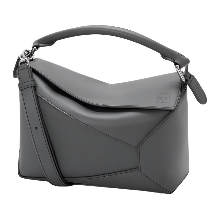 LOEWE罗意威 Anagram Puzzle Edge 几何线条设计 小牛皮 手提包 小号 女款 深灰色