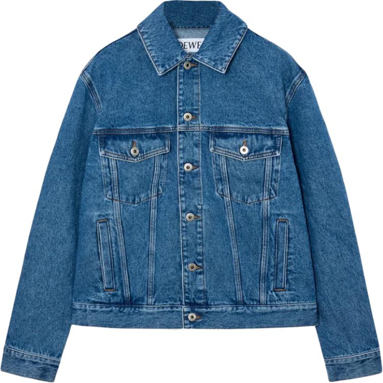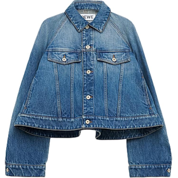 LOEWE罗意威 SS25 翻领梯形廓形插肩袖牛仔外套 女款 蓝色