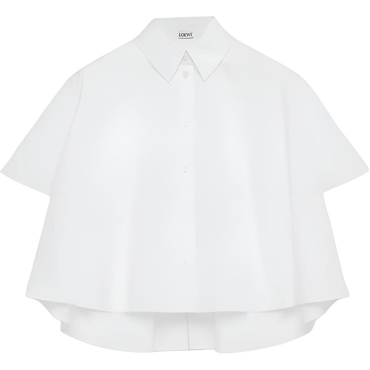 LOEWE罗意威 FW25 女装预选系列棉质短袖梯形衬衫 女款 白色