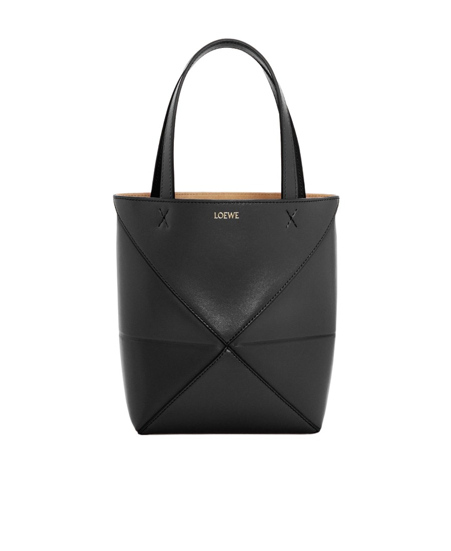 LOEWE罗意威 Puzzle Fold 压纹徽标拼图折叠亮面 小牛皮 托特包Tote包购物袋手提包 迷你 男款 黑色
