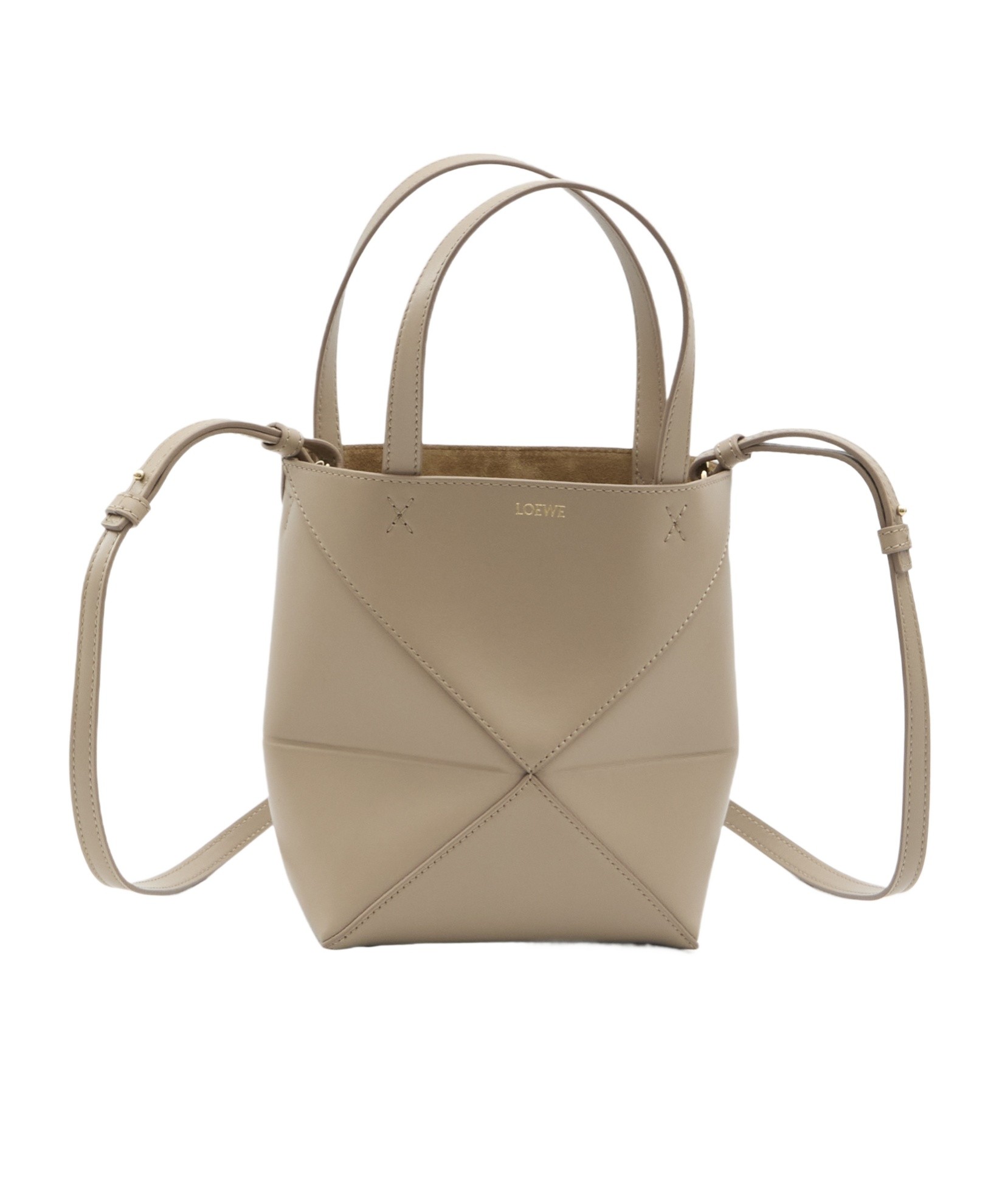 LOEWE罗意威 Puzzle Fold 可调节可拆卸肩带徽标浮雕 小牛皮 单肩斜挎手提包 迷你 女款 沙色