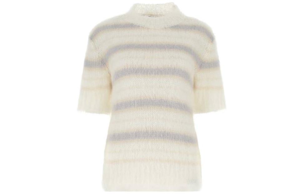 MARNI SS23 条纹细节套头短袖毛衣 女款 米色
