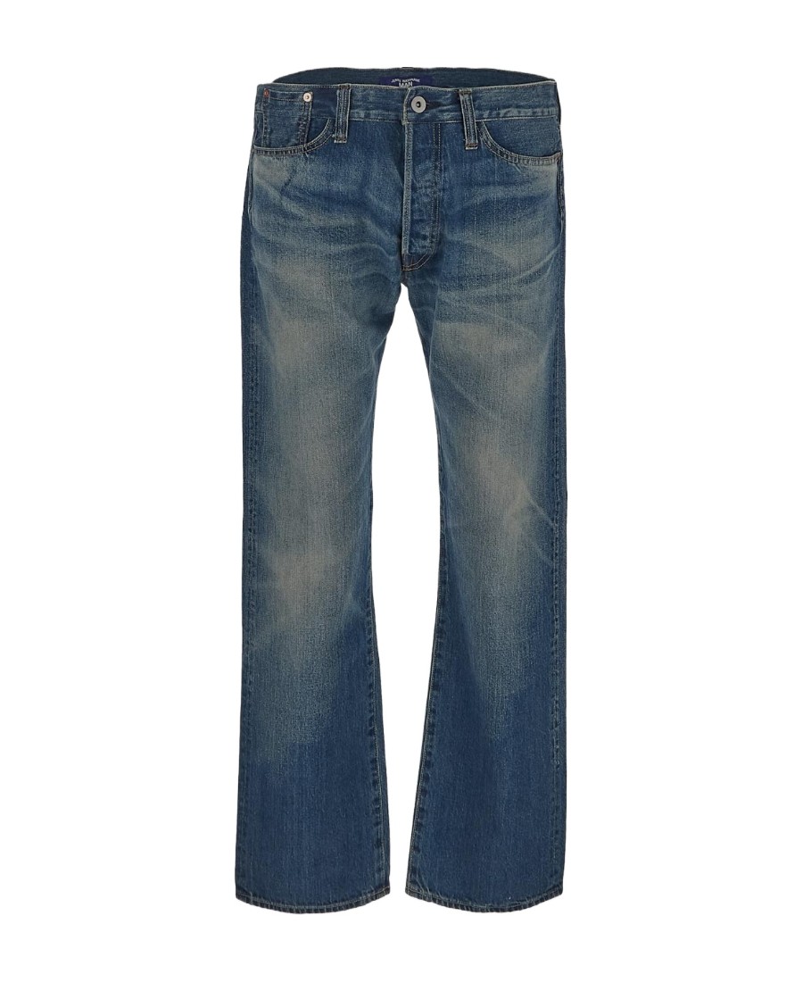 JUNYA WATANABE 卡通印花贴片水洗直筒拉链牛仔裤 男款 蓝色