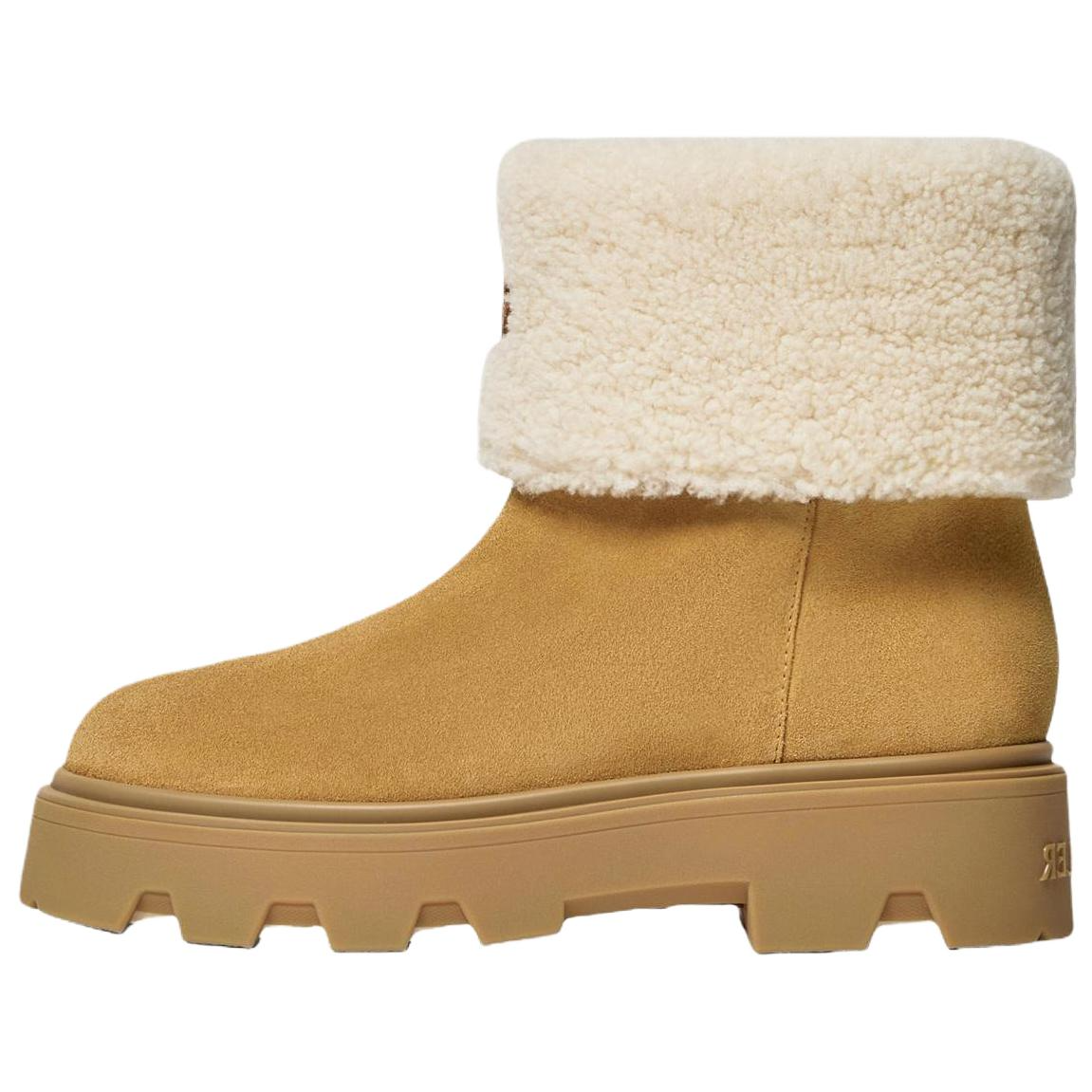 Moncler盟可睐 Aurea 绒面革 圆头套筒 短筒 雪地靴 4cm 女款 驼色