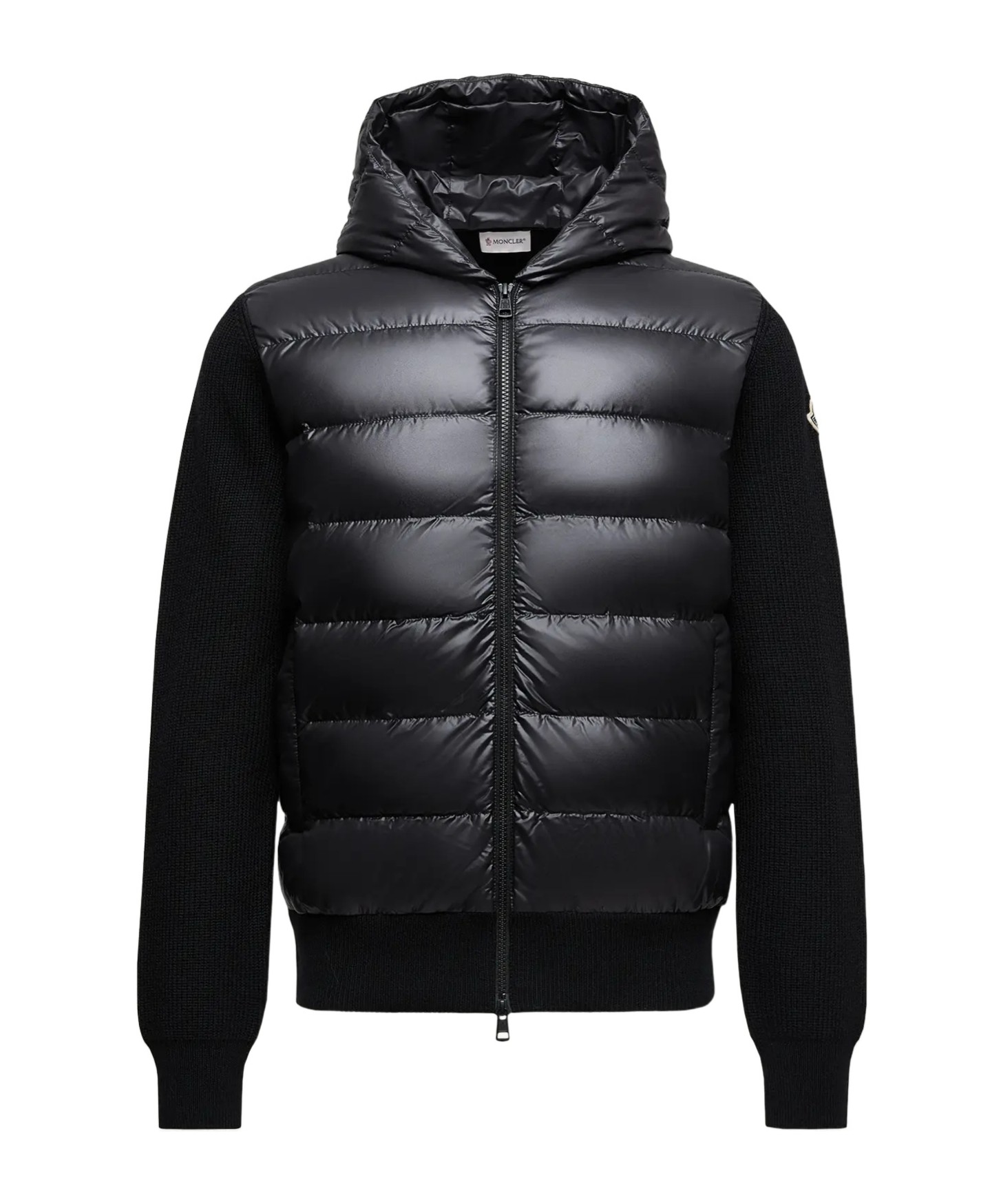Moncler盟可睐 Padded Corduroy系列 Padded Zip-Up Cardigan 拼接羊毛徽标连帽拉链长袖羽绒服 男款 黑色