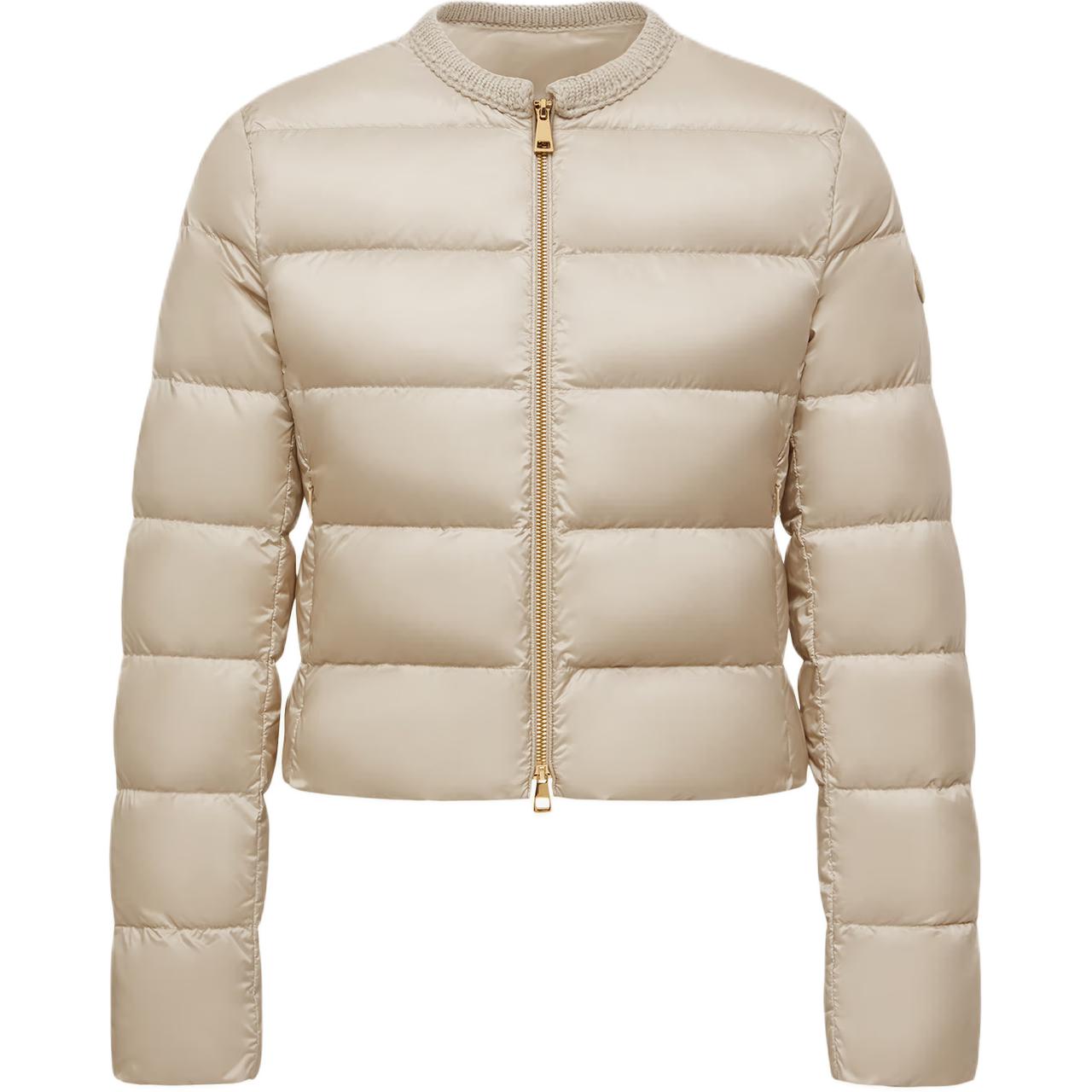 Moncler盟可睐 Wool-Trimmed Short Mauvezin系列 纯色羊毛拉链圆领短款羽绒服 女款 米色