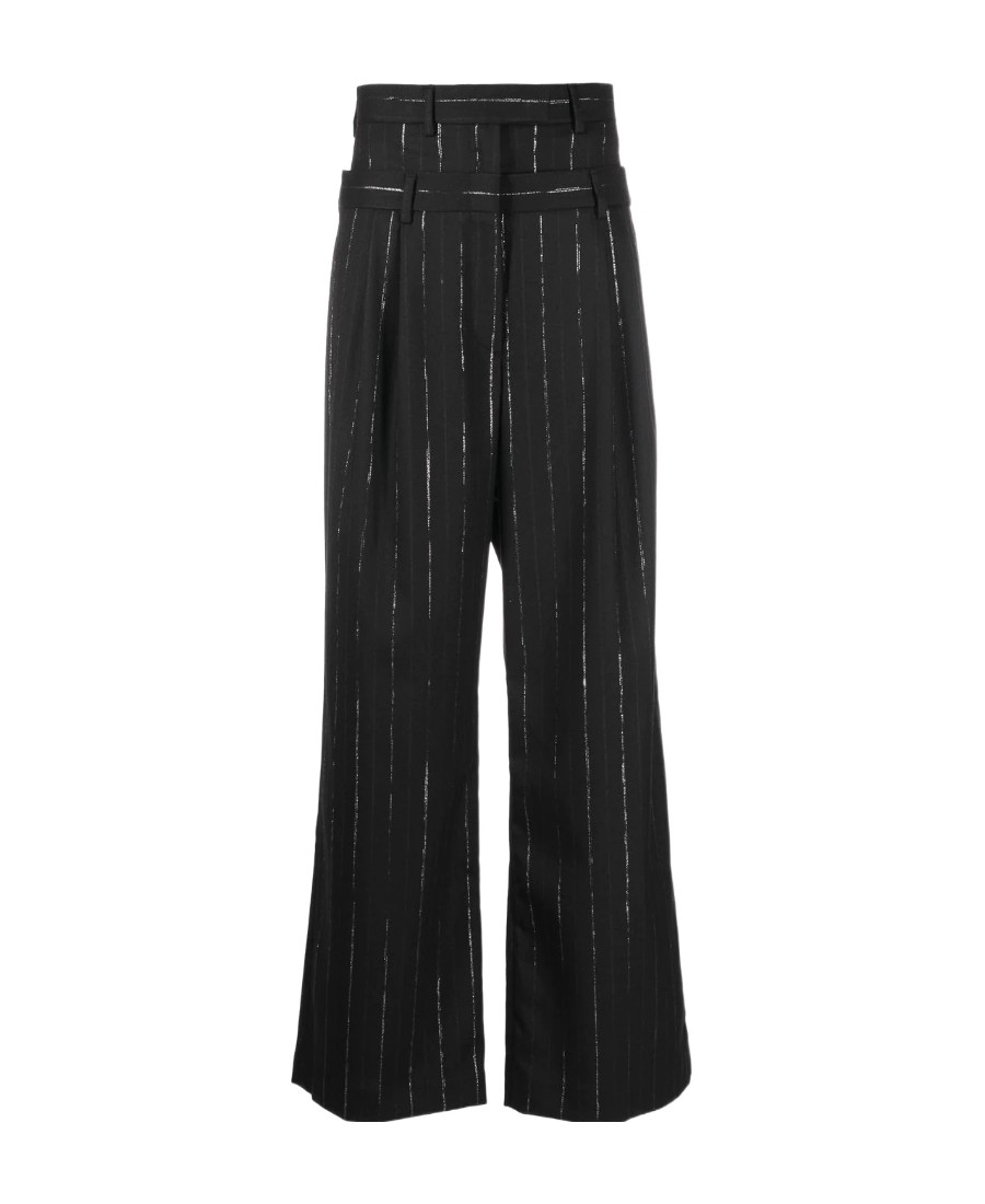 MSGM FW22 细条纹混纺分层式裤腰阔腿休闲裤 女款 黑色