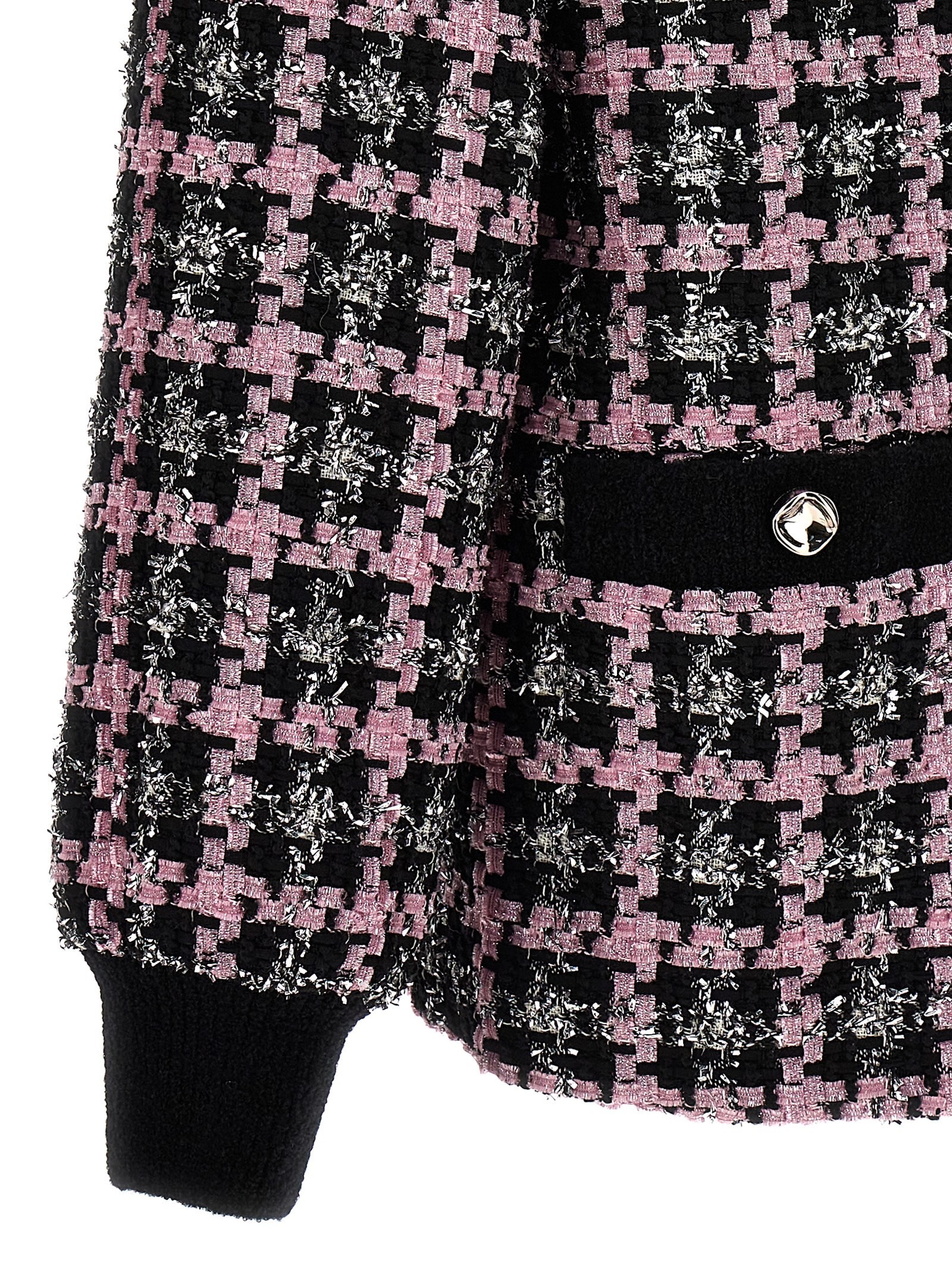 MSGM FW23 宽松V领单排扣格子印花长袖毛衣 女款 粉色