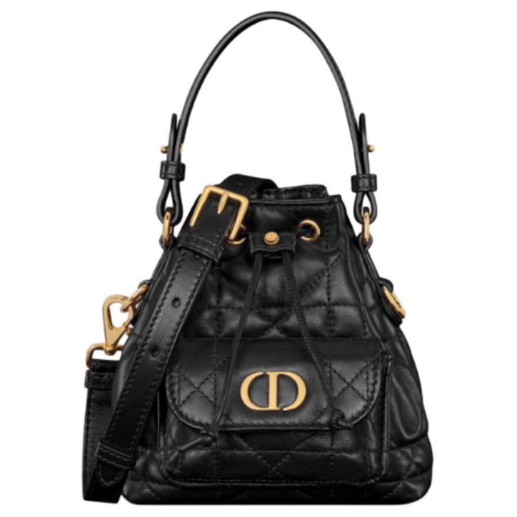 DIOR迪奥 Caro 金色饰面金属CD标志 羊皮革 单肩斜挎手提包 迷你 女款 黑色