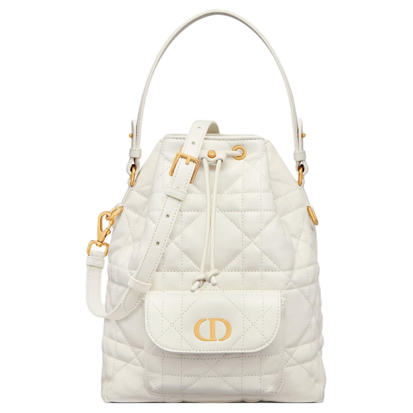 DIOR迪奥 Caro 金色饰面金属CD标志 羊皮革 水桶包单肩手提包 小号 女款 奶白色