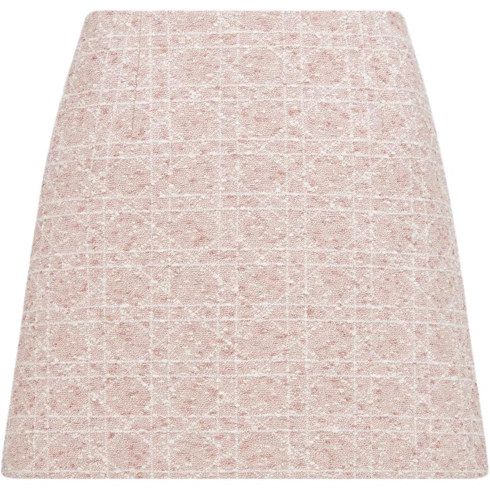 DIOR迪奥 棉质混纺粗花呢藤格纹插袋喇叭休闲短裙 女款 粉色