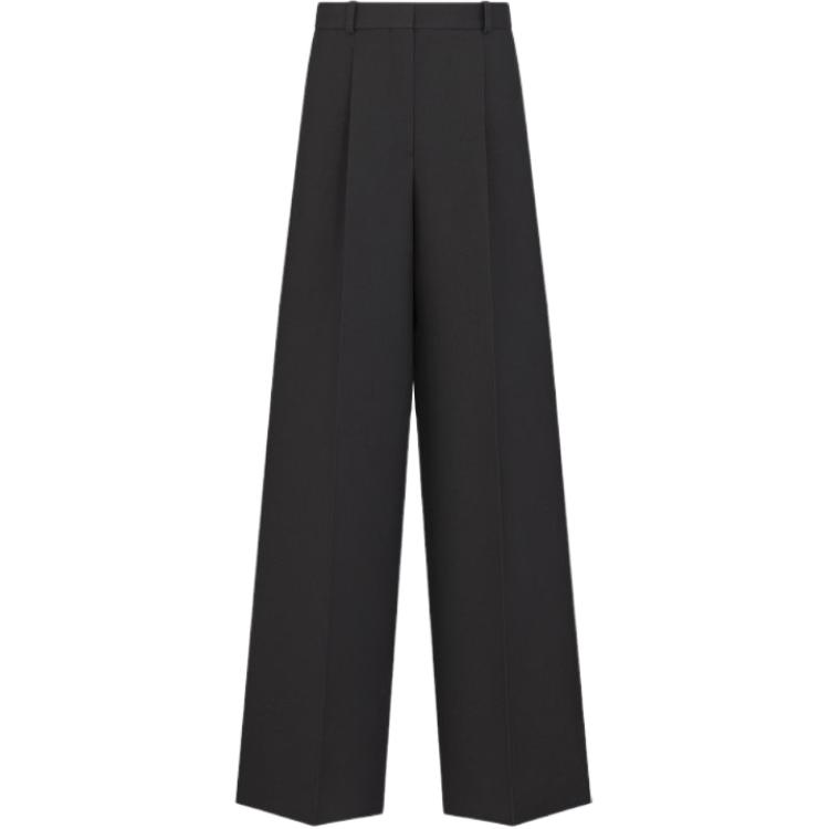 DIOR迪奥 羊毛混纺纯色褶皱喇叭拉链休闲裤 女款 黑色