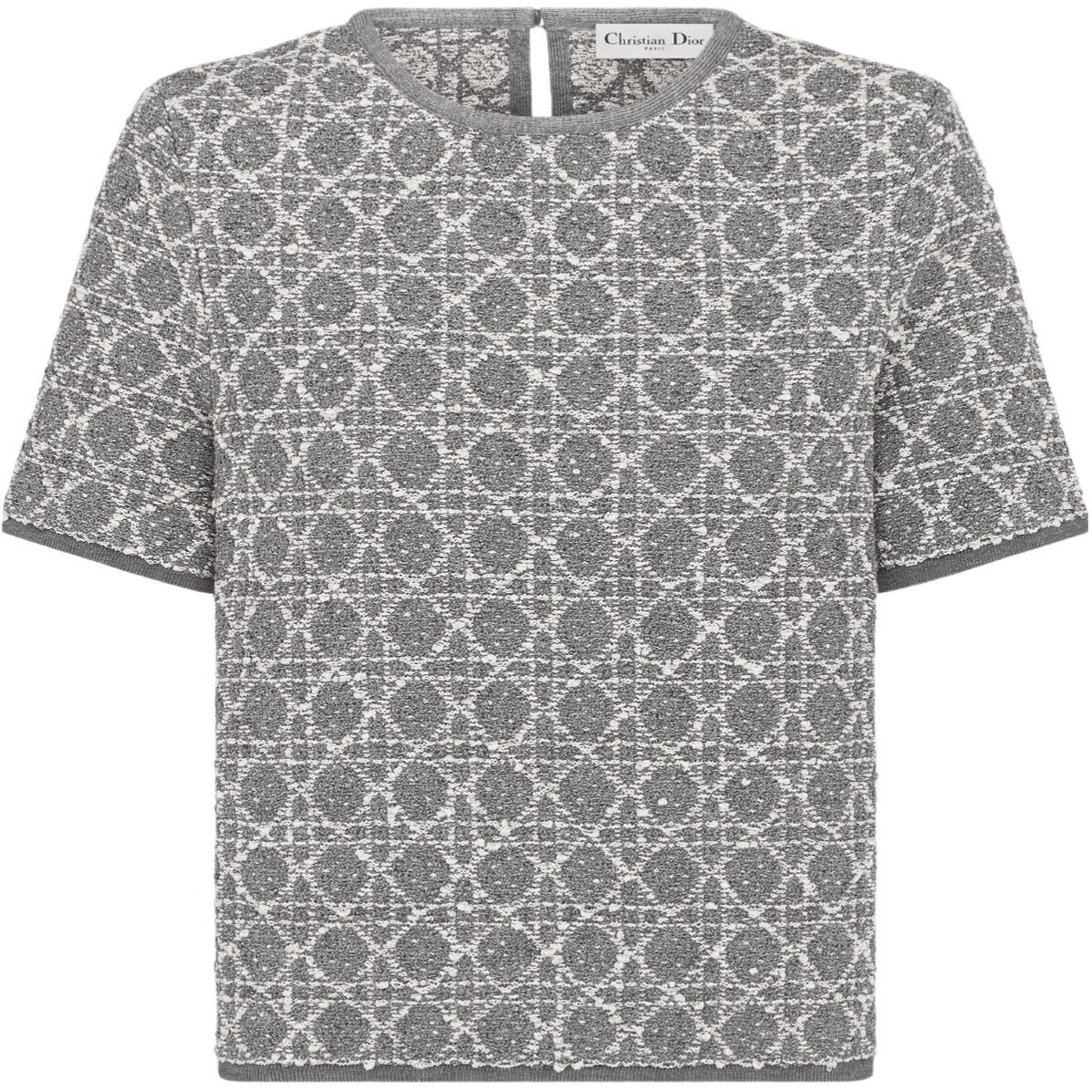 DIOR迪奥 棉质混纺粗花呢针织藤格纹圆领套头短袖 常规T恤 女款 灰色