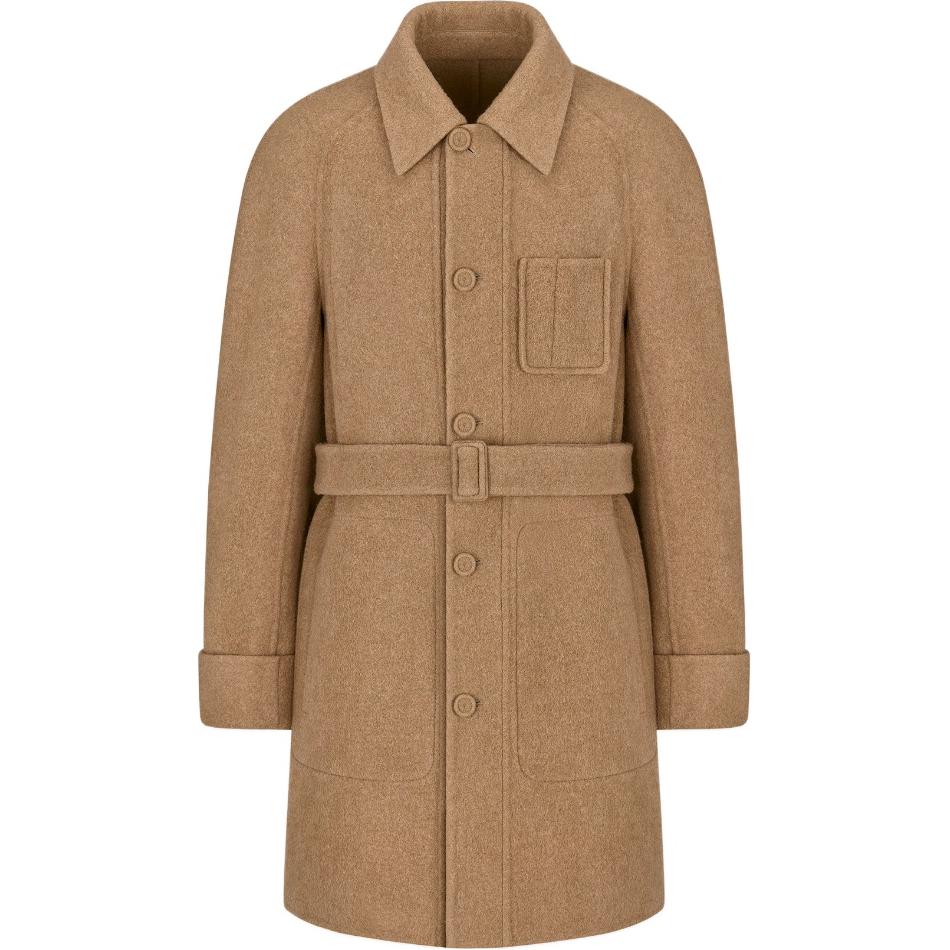 DIOR迪奥 纯色胸前口袋翻领单排扣中长款长袖大衣 女款 米色