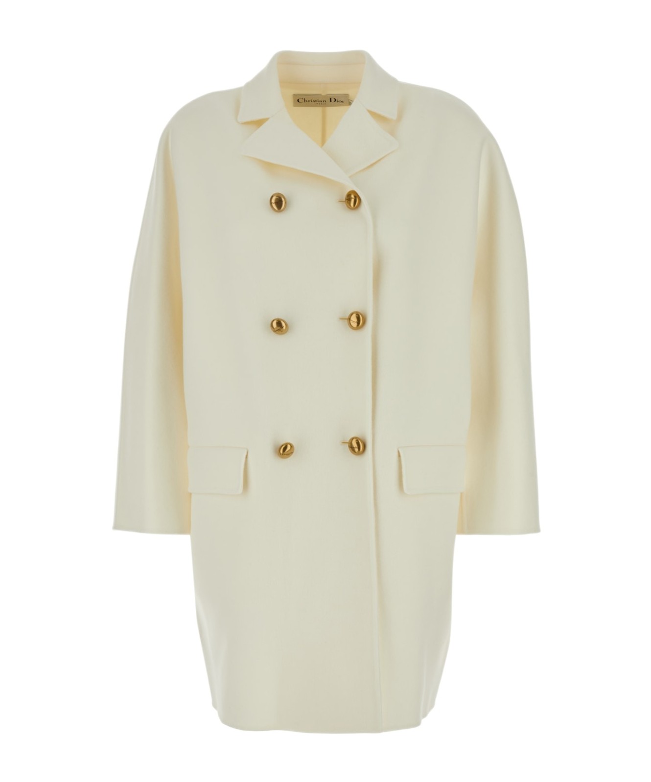 DIOR迪奥 纯色翻领宽松双排扣长袖中长款大衣 女款 米白色