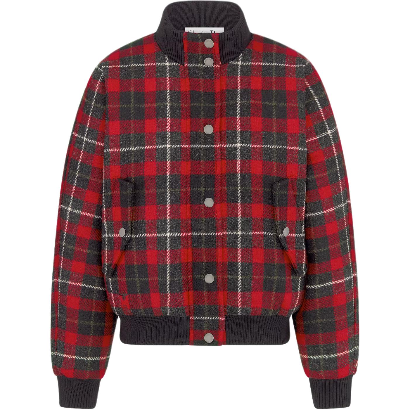 DIOR迪奥 格子罗纹衣领宽松飞行员长袖夹克外套 女款 红色