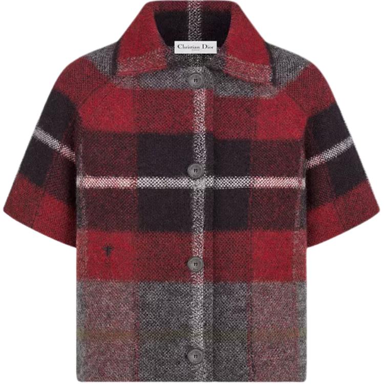 DIOR迪奥 格纹翻领单排扣短袖夹克外套 女款 红色