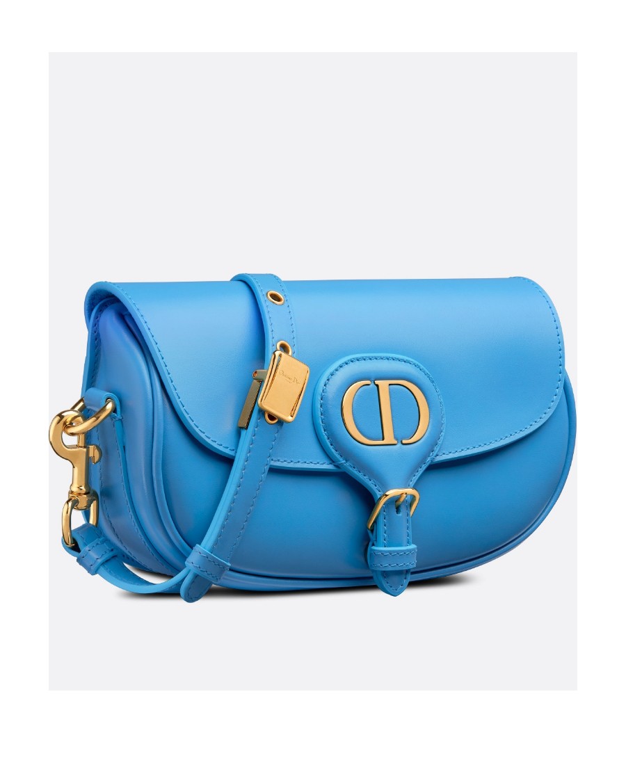 【早春新品】 DIOR迪奥 Bobby 金色金属配件经典Logo徽标可拆卸可调节肩带 光面牛皮革 新月包手提单肩斜挎包 女款 北卡蓝