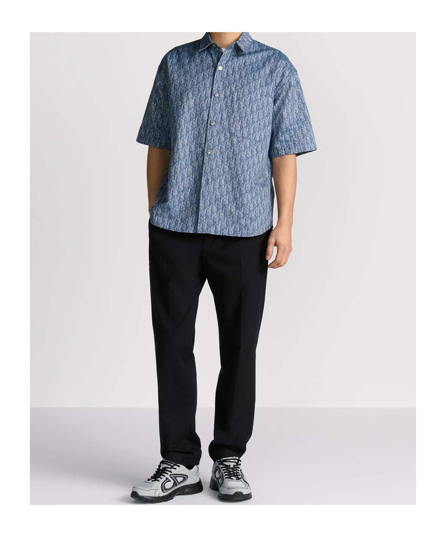 DIOR迪奥 FW25 秋季男装系列 棉质斜纹Oblique印花短袖衬衫 男款 蓝色