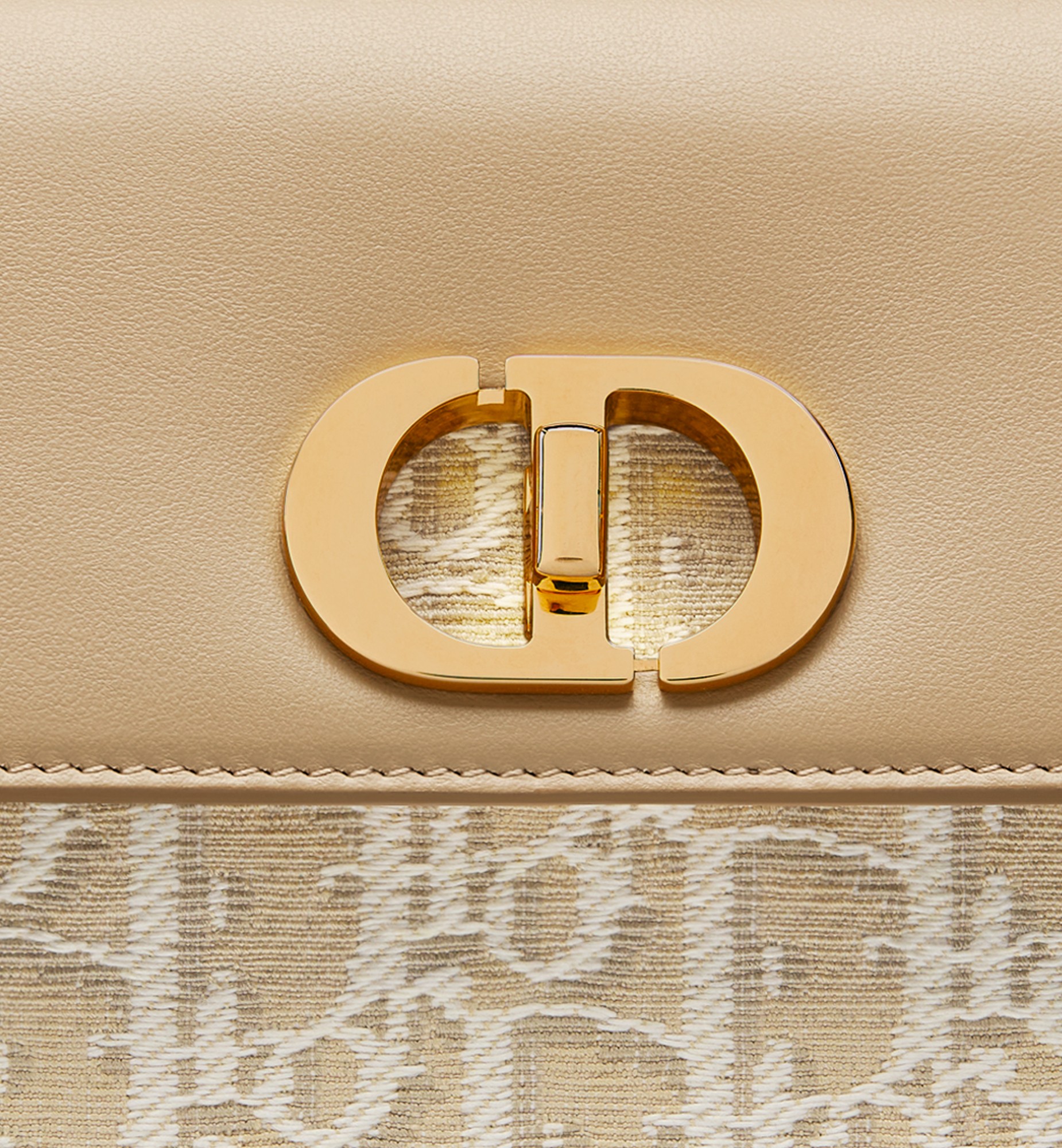 DIOR迪奥 30 Montaigne 品牌标志链条装饰 棉拼牛皮革 单肩包 迷你 女款 自然色