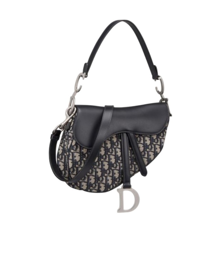 DIOR迪奥 Saddle 可调节可拆卸肩带马镫 D 形吊饰 Oblique 印花面料拼光滑牛皮革 马鞍包单肩斜挎手提包 女款 蓝色
