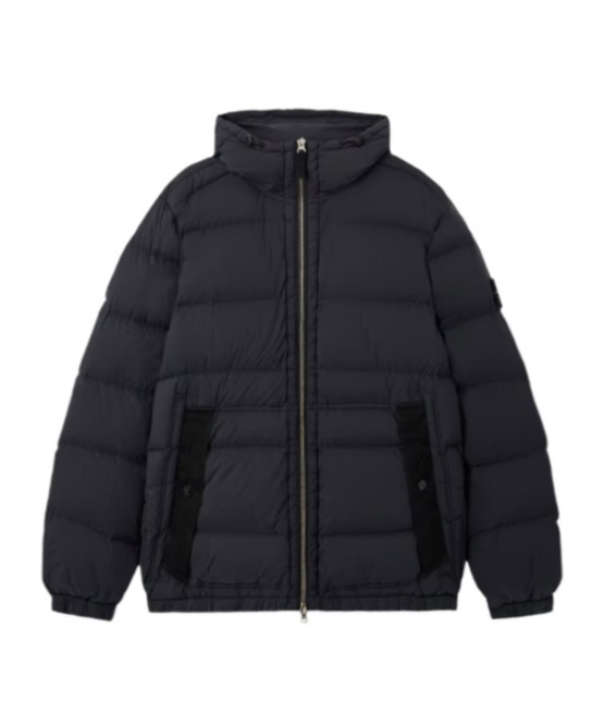 STONE ISLAND石头岛 FW25 尼龙拼接纯色排骨绗缝Logo连帽拉链长袖秋冬羽绒服外套 男女同款 黑色