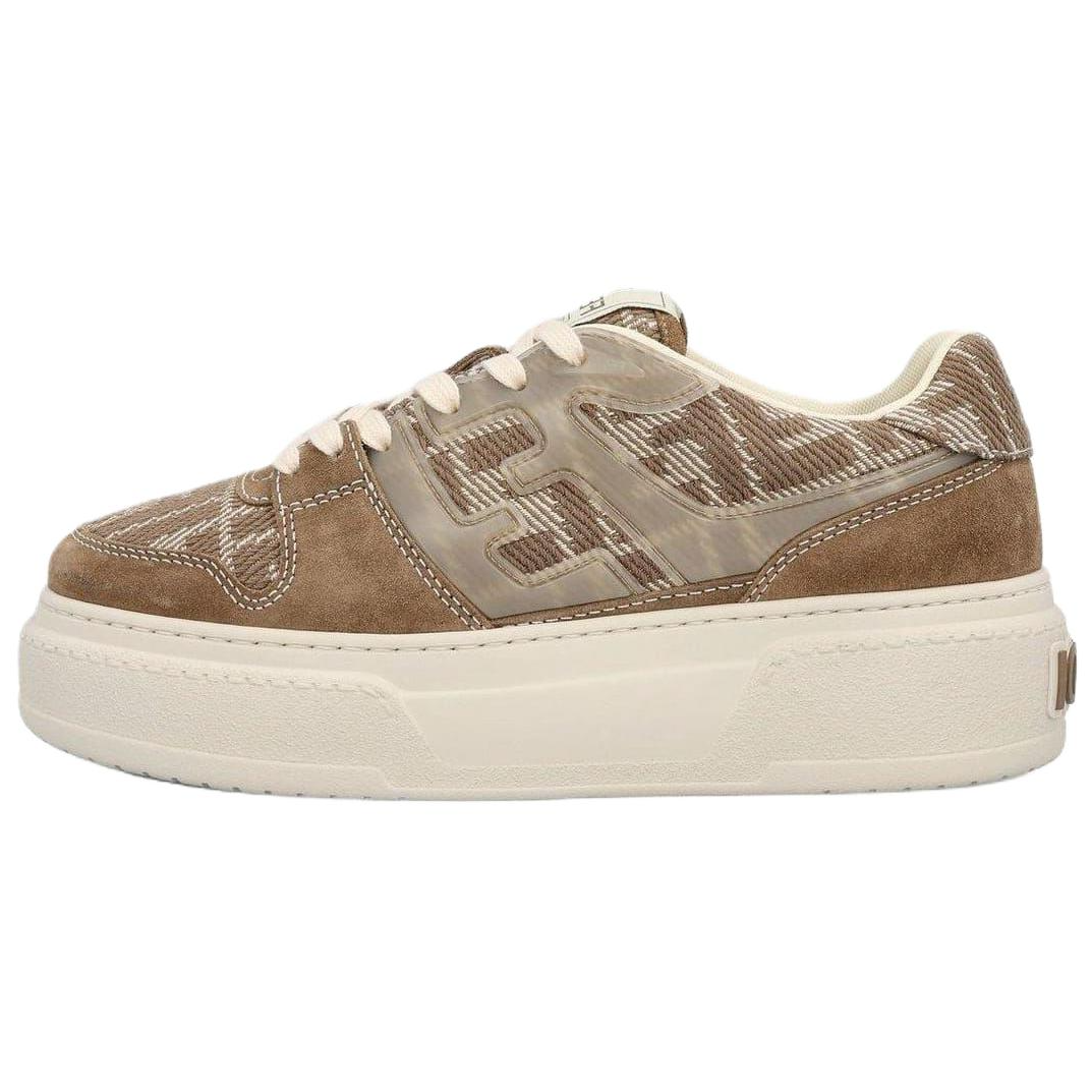 FENDI芬迪 Match 2025春夏系列 棉 小牛皮 圆头系带 低帮 板鞋 女款 米色