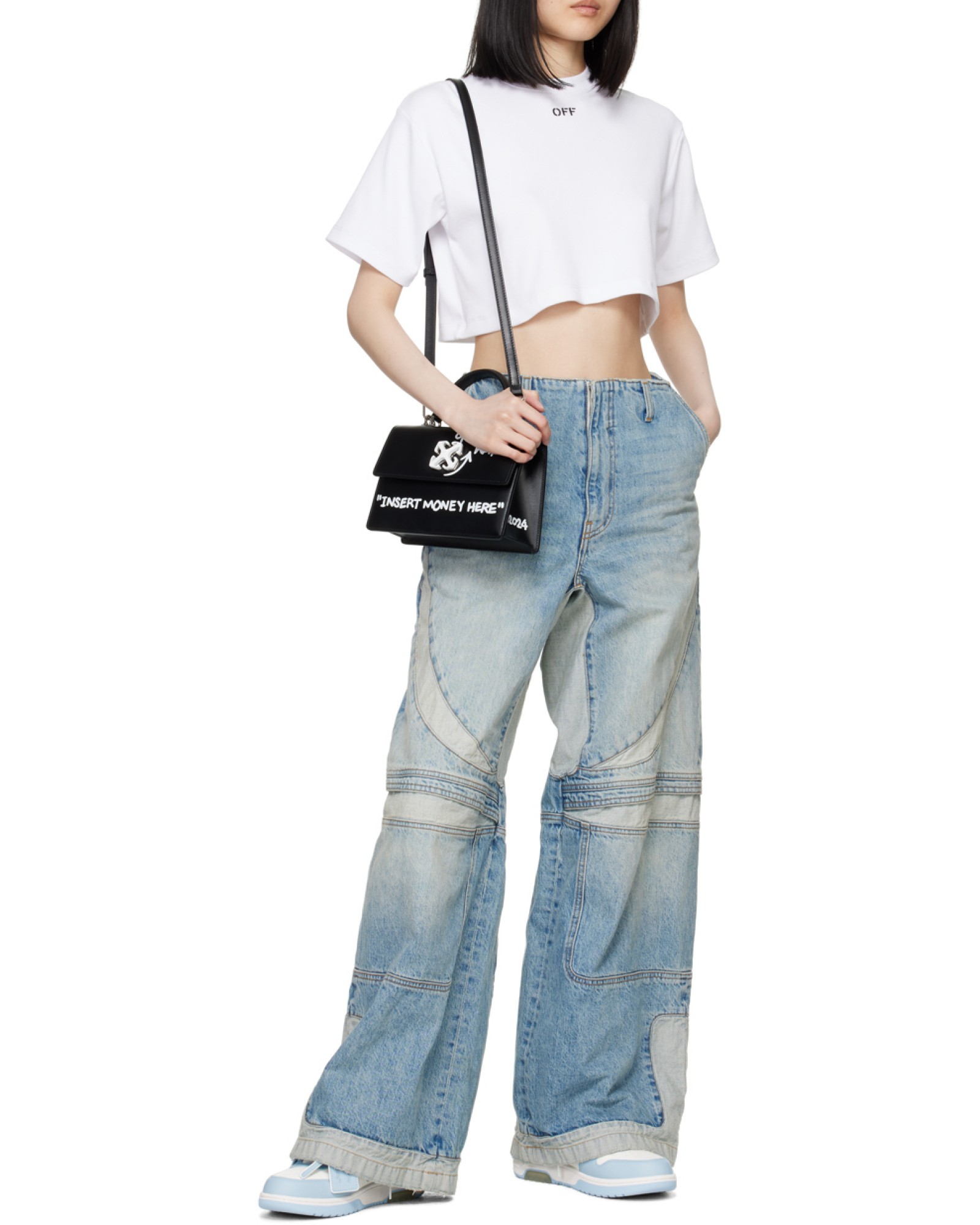 OFF-WHITE Out Of Office 皮革 系带圆头时尚 低帮 板鞋 女款 蓝白