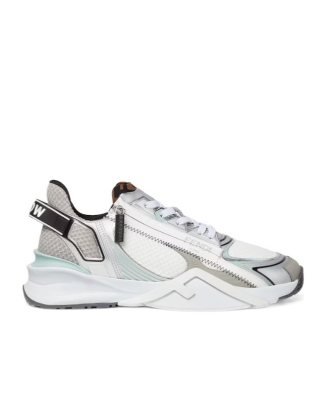 FENDI芬迪 Flow 涤纶(聚酯纤维)PU(聚氨酯) 高科技网眼布 圆头拉链 运动 低帮 生活休闲鞋 男款 白色