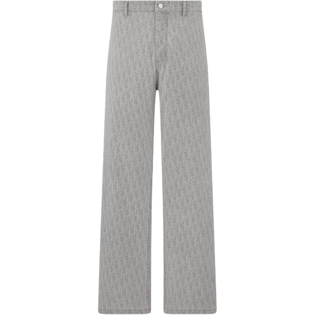 DIOR迪奥 SS25 春季男士成衣系列 棉质Oblique印花皮革标牌牛仔裤 男款 灰色